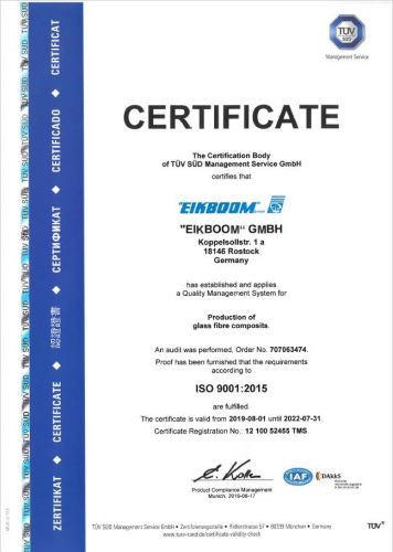 The company »EIKBOOM« has always proven itself beyond the production of pure GRP elements as a developer and supplier of complex composites components. Our products are pre-assembled and can be installed directly. Product development, documentation, design of the prototypes and production of the serial components go hand in hand with our customers. This ensures production advantages through reliability and efficiency in the process. These are constantly being extended by a close customer-supplier relationship.
